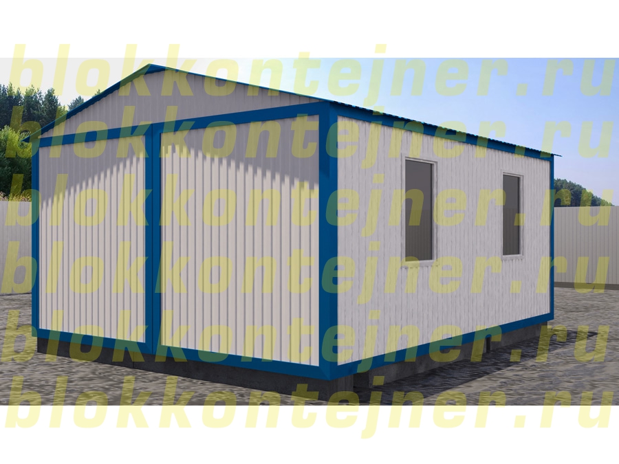 Модульный дачный домик из 2-х шт бытовок, с двускатной крышей